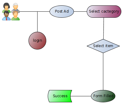 我在一个分类广告网站上工作,有12个类别。例如,类别vehicles有条目cars、bikes、Commercial Vehicles和spare parts。以下是张贴广告的流程图: