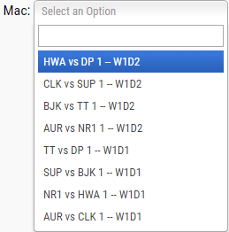 和<optgroup label="Week 1 Day 1"> -w1d1 matches- </optgroup>