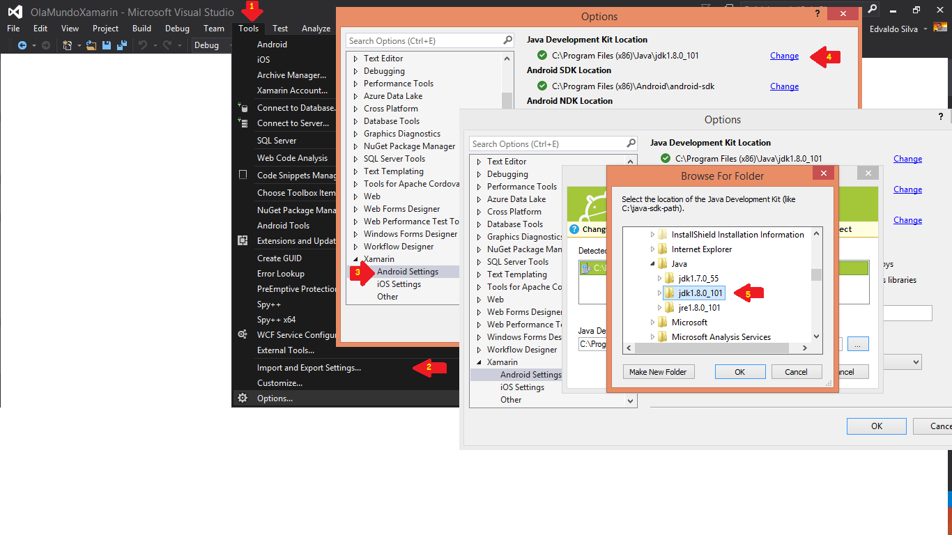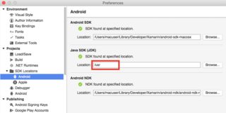 - **Xamarin Studio** (on Mac): _Xamarin Studio > Preferences > Projects > SDK Locations > Android > Java SDK (JDK)_.