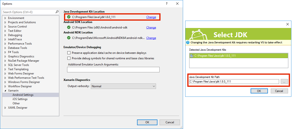 - **Visual Studio**: _Tools > Options > Xamarin > Android Settings > Java Development Kit Location_.