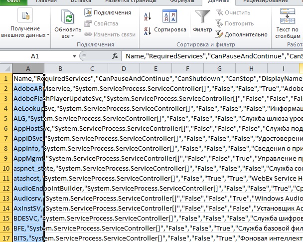 # Opens with all fields in column A, used to test TextToColumns works