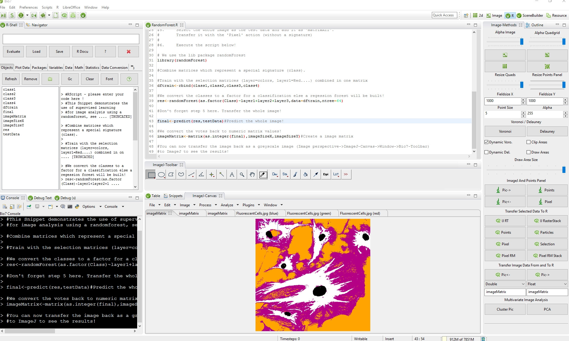 今天我发现了一个奇迹,那就是Bio7。这个像eclipse一样的IDE结合了R和ImageJ,他们的网站有关于如何用这种组合进行图像特征提取和ML的教程。