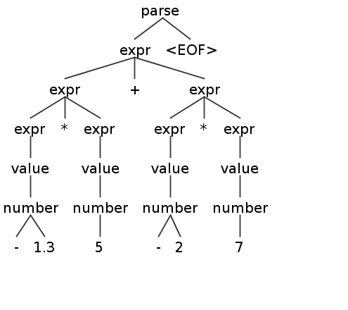 visitAddsubtArithmeticExpr 1.3*5+-2*7