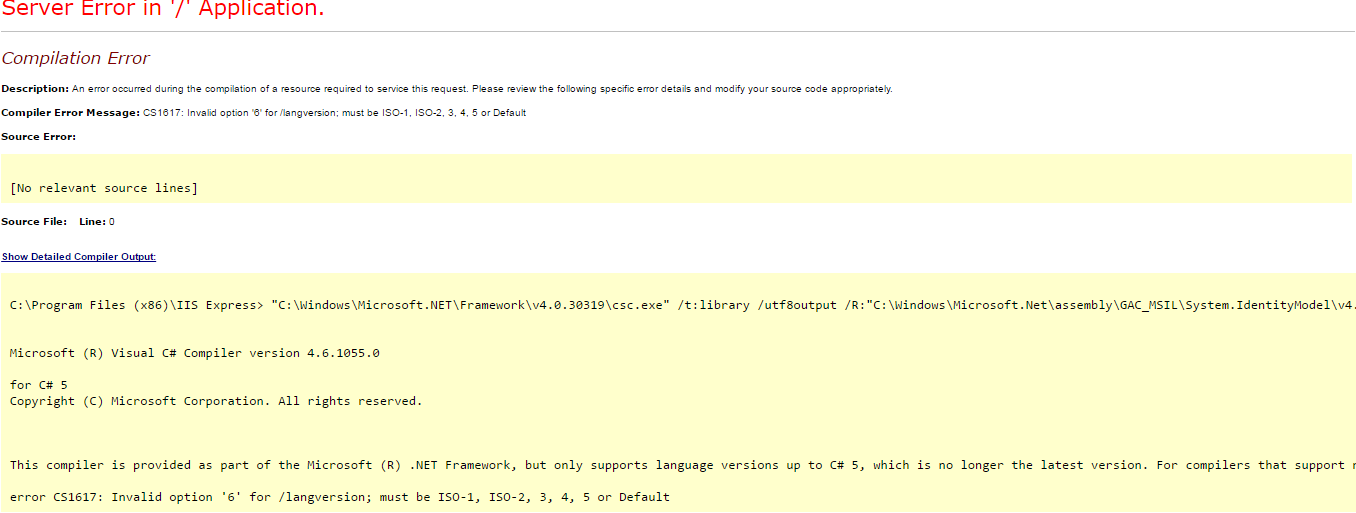 错误: or 1617:无效选项'6‘的/langversion;必须是ISO-1,ISO-2,3,4,5或默认。