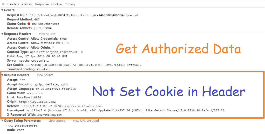 服务器设置cookie作为响应,并获得授权的数据请求如下所示: