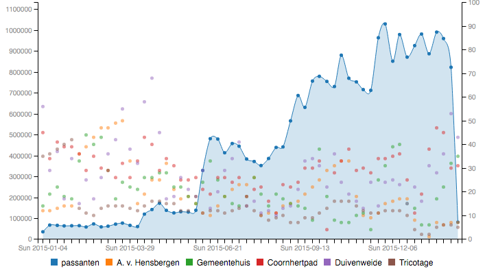 function updateGraph(yAxis, xAxis, Hensbergen, Gemeentehuis, Coornhertpad, Duivenweide, Tricotage) {