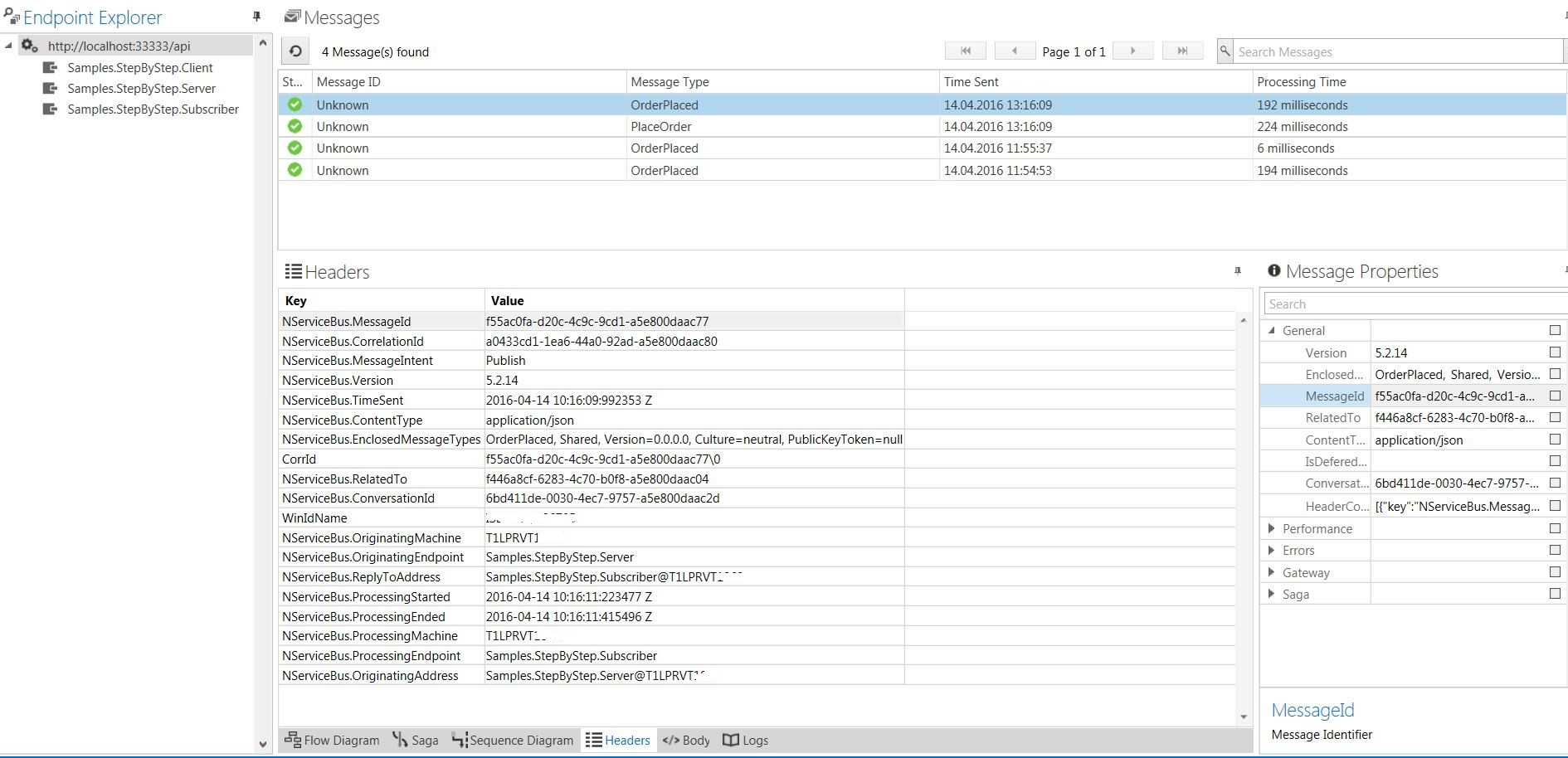 }正如您在屏幕截图中所看到的,它连接到msmq并可以获取消息。然而,流程图和序列图是空的。