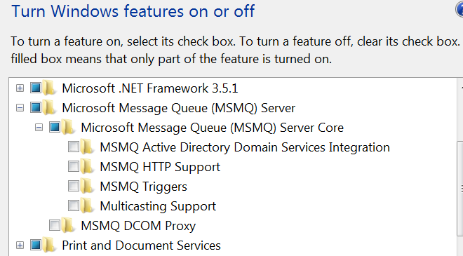 这里还有MSMQ安装的功能、屏幕截图和帮助错误重新创建的版本。
