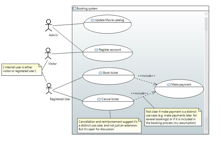 显然,类Movie、Book tickets、Make payment并不代表用户的角色。