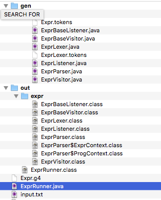 INT : [0-9]+ ;我可以使用o在不同的目录中获取生成的文件,并使用package选项添加包信息。