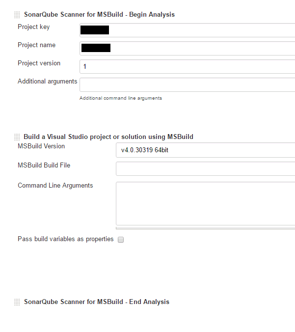 ERROR: Execution of SonarQube Scanner for MSBuild failed (exit code 1)因此,在我的Jenkins配置中,我有以下内容: