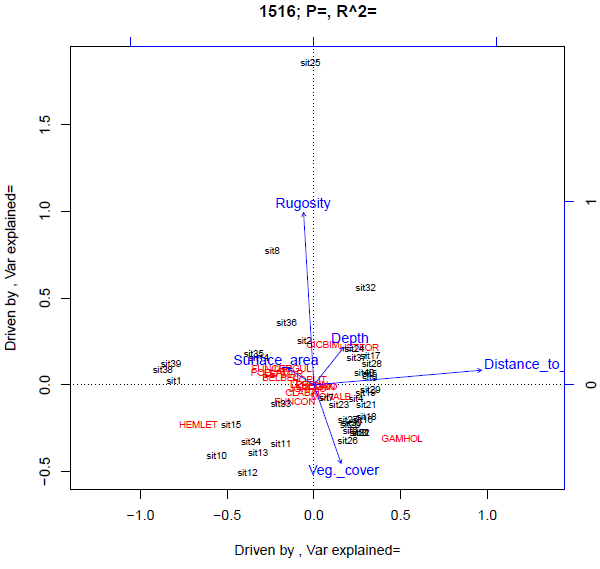 plot(rda1516,bty="n",xaxt="n",yaxt="n",main="1516; P=, R^2=",