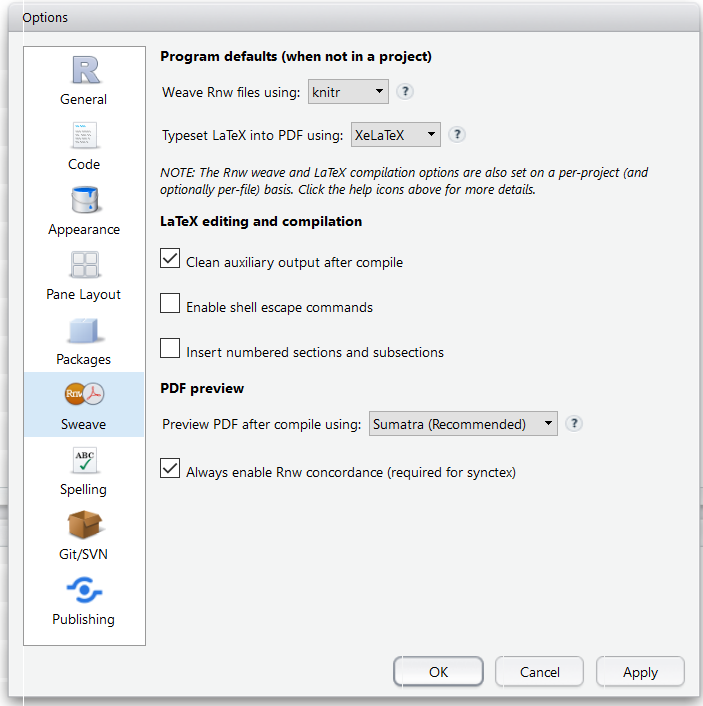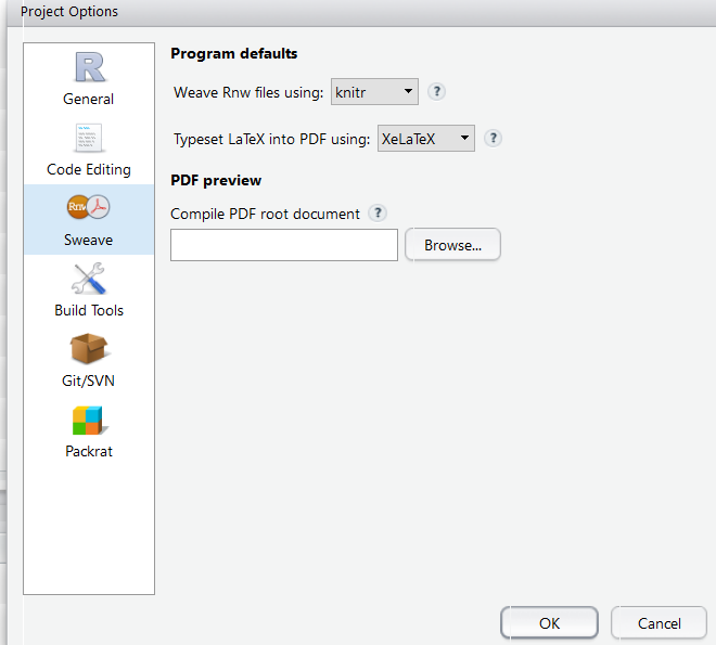我已经将RStudio中的全局选项和项目选项设置为使用XeLaTex构建