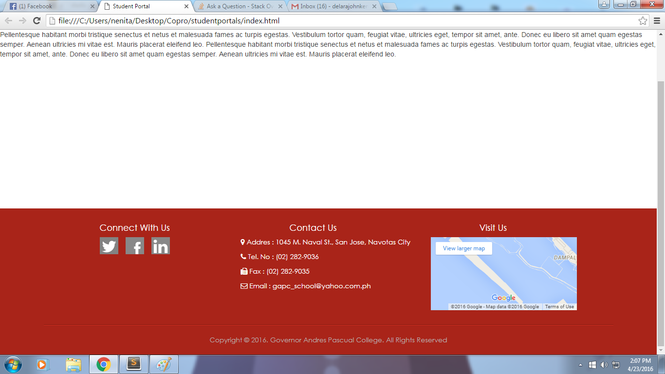 <p class="copyr">Copyright © 2016. Governor Andres Pascual College. All Rights Reserved</p>