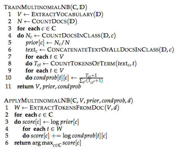 我正在研究所描述的训练和应用多项式NB的算法,如下所示: