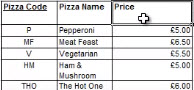 假设我有这张表,其中Pizza代码是主键