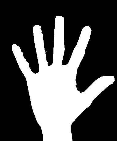 您的主要目标应该是从背景中检测到手,如下图所示。