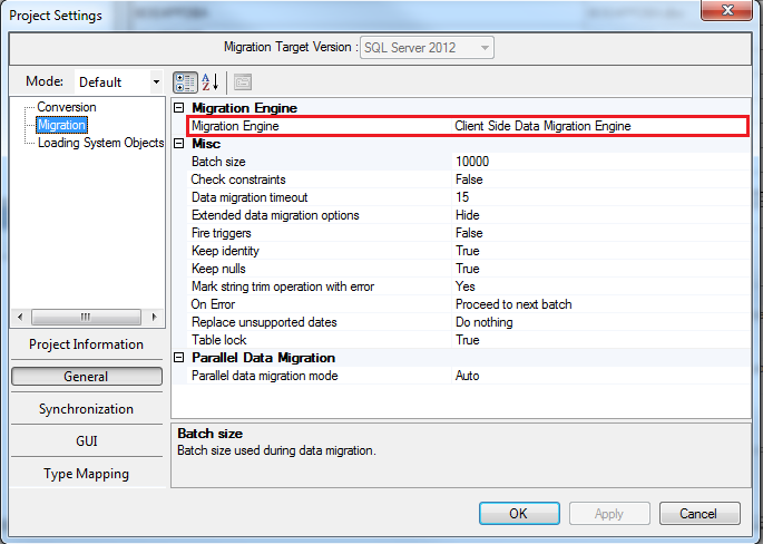 GOTO:(menu)>Project设置(submenu)>General ( Tools )(GOTO panel)>Migration (upper tree) ))