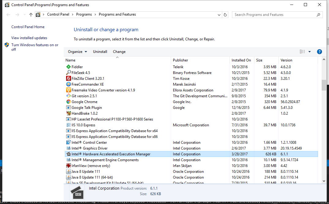 查找Intel硬件加速执行管理器并检查其版本。从错误中可以看出,在您的情况下,应该是1.1.1。卸载它。