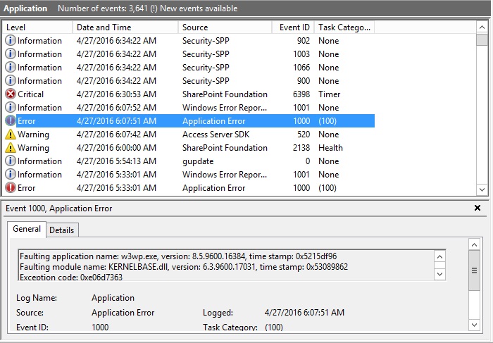我使用的是运行在WindowsServer2012R2和IIS8.5上的Sharepoint服务器2013。我想将sharepoint 2013与OAM(Oracle访问管理器)集成为一个单独的标志。我在互联网上遵循了一些指南,但它都使用webgate 10g与OAM服务器进行通信,并与sharepoint 2010集成。我试图在IIS8.5上安装webgate 10g,但它似乎不起作用,可能是兼容性问题。然后我试着安装webgate 11g,但是它也不起作用。以下是我浏览受webgate 11g保护的web应用程序时的事件查看器日志: