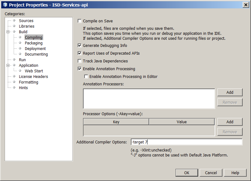 更重要的是实际安装和使用JDK 8并针对java 7(通过指定-target,就像在屏幕截图中那样)。这里的风险是,您可能会意外地导入和java 8中新的内容,此时jdk8将很高兴地生成兼容java 7的字节码,这些字节码将无法找到您在运行时使用的类/方法。