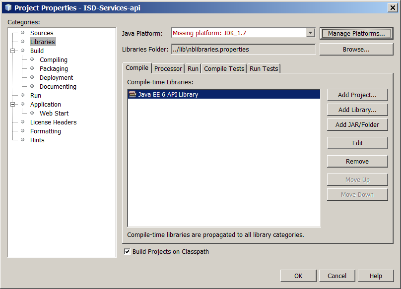 该项目需要Java平台1.7,如下所示: