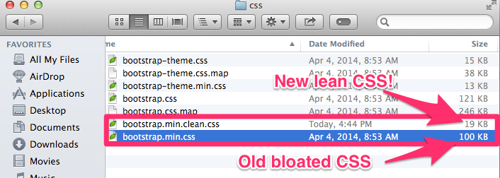gulp uncss因此,现在,如果您查看您的CSS文件夹或您为目标路径选择的任何位置,您将看到一个新的瘦CSS,其后缀为‘.clean’,应该如下所示: