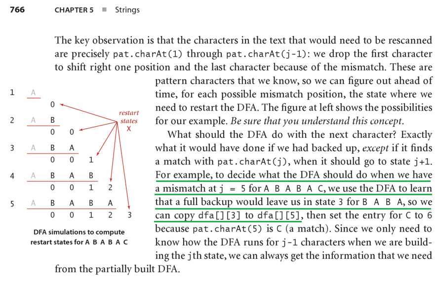 ABABAC,我们使用DFA来了解完全备份将使我们处于BABA的状态3,这样我们就可以将dfa[][3]复制到dfa[][5]。