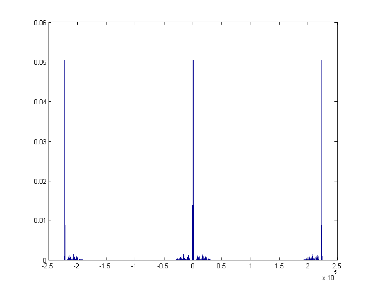 bar((-length(y)/2)+1:1:(length(y)/2),a_k);功率谱看起来如下: