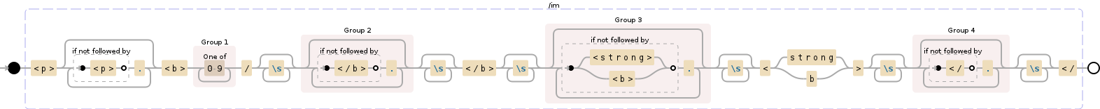 <p>(?:(?!<p>).)*<b>([0-9]+)/\s*((?:(?!</b>).)*?)\s*</b>\s*((?:(?!<strong>|<b>).)*?)\s*<(?:strong|b)>\s*((?:(?!</).)*?)\s*</将您的文本解析为以下捕获组: