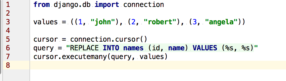 我现在正在使用Django cursor.execuremany一段时间,我想做一些引导。