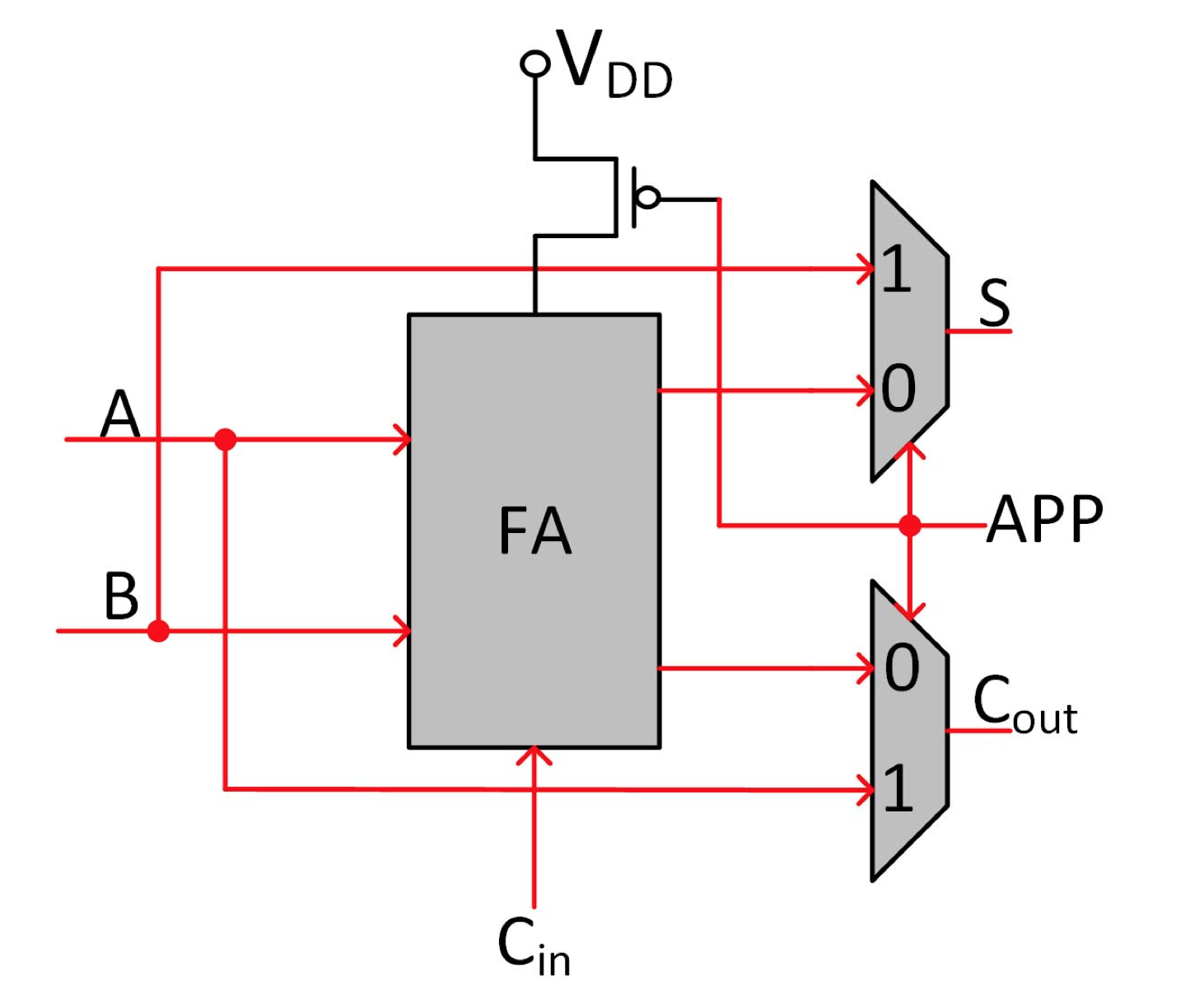 我想用verilog实现以下电路。FA为全加器电路,梯形为mux。我不知道如何在电路中添加这种功率门控pmos。另外,我还想综合一下Synopsys设计视觉中的电路,并计算当应用程序为0和1时的功率差异。