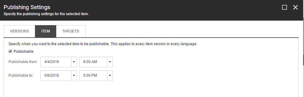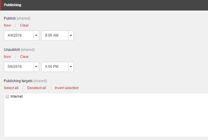 因此,我用外部页面在Sitecore中创建了一些项,它们应该有特定的发布/取消发布日期。