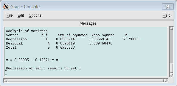 <Bonus tip: Grace seems to like each row to have a line break at the end!>在“数据”菜单中,选择“转换”>“回归”。
