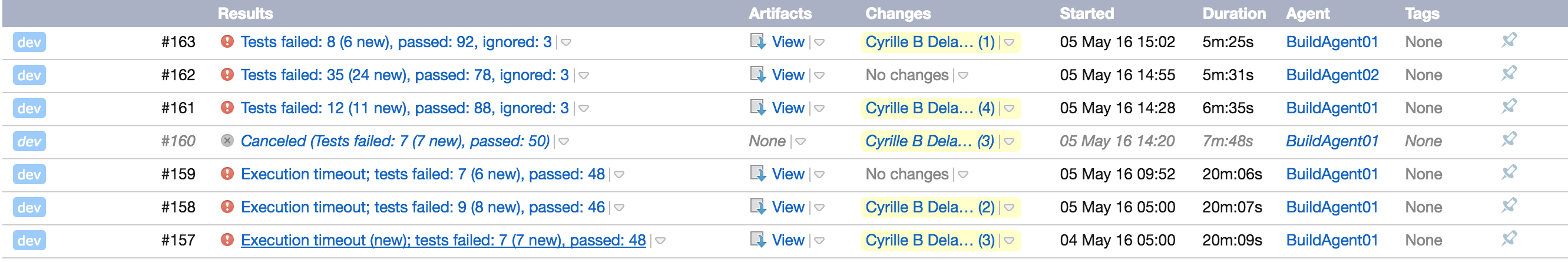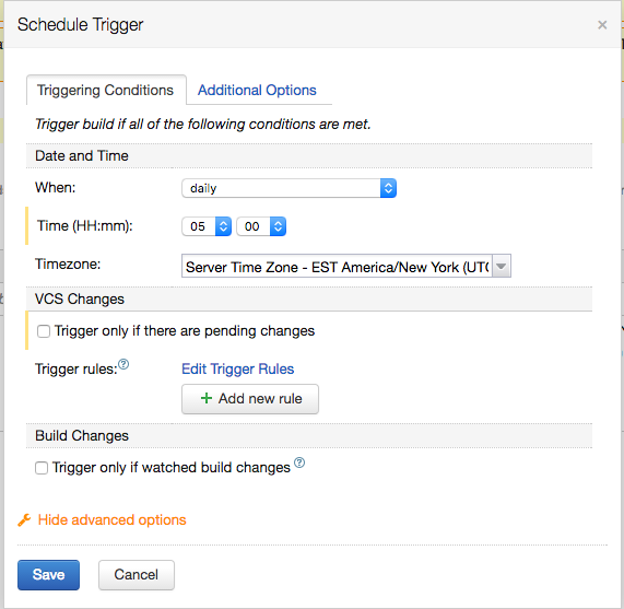 然而,触发因素似乎是不稳定的。它已经运行了很多次,包括5月4日和5月5日,但在我配置触发器后的其他几天里,它今天早上也没能运行。