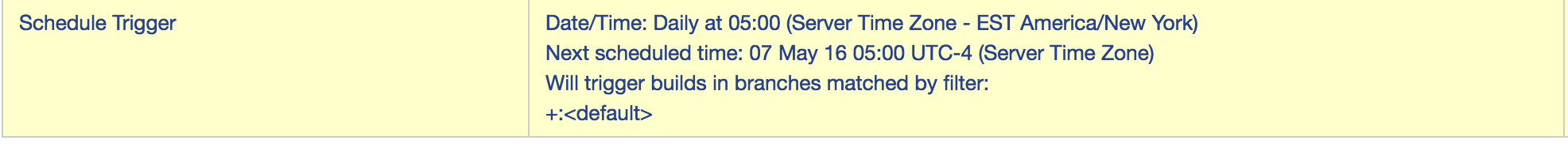 我有一些测试配置为每天早上5:00 UTC-4运行。