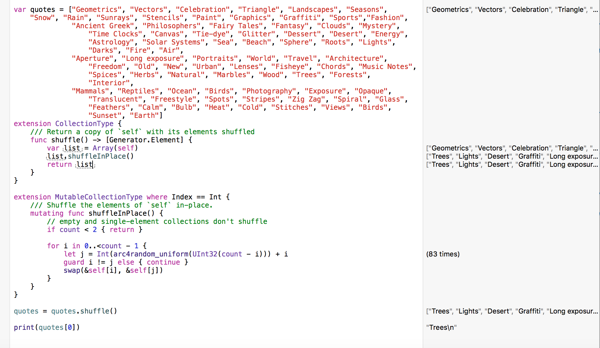 洗牌分机不是我写的。Nate Cook:https://stackoverflow.com/a/24029847/2803960