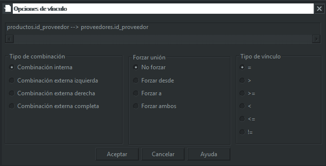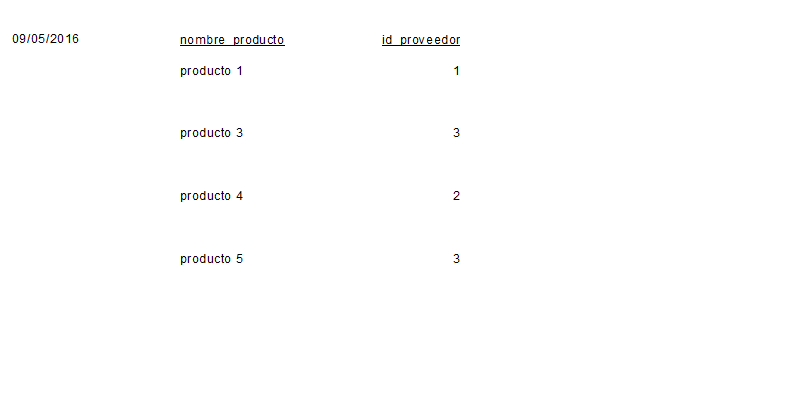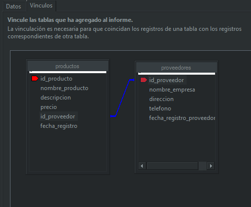 您应该在报表中使用nombre_empresa字段,而不是id_proveedor。如果您通过join从概念上将一个表链接到另一个表,它不会神奇地用相关值替换对另一个表中ID字段的引用。