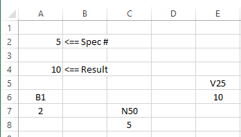 [V25] = 10我想在这些单元格中找到比一个特定值更接近的数字。例如,如果值为1,那么单元格[B1]中的数字应该是2。如果值为4,则单元格[N50]中的数字应该是5。