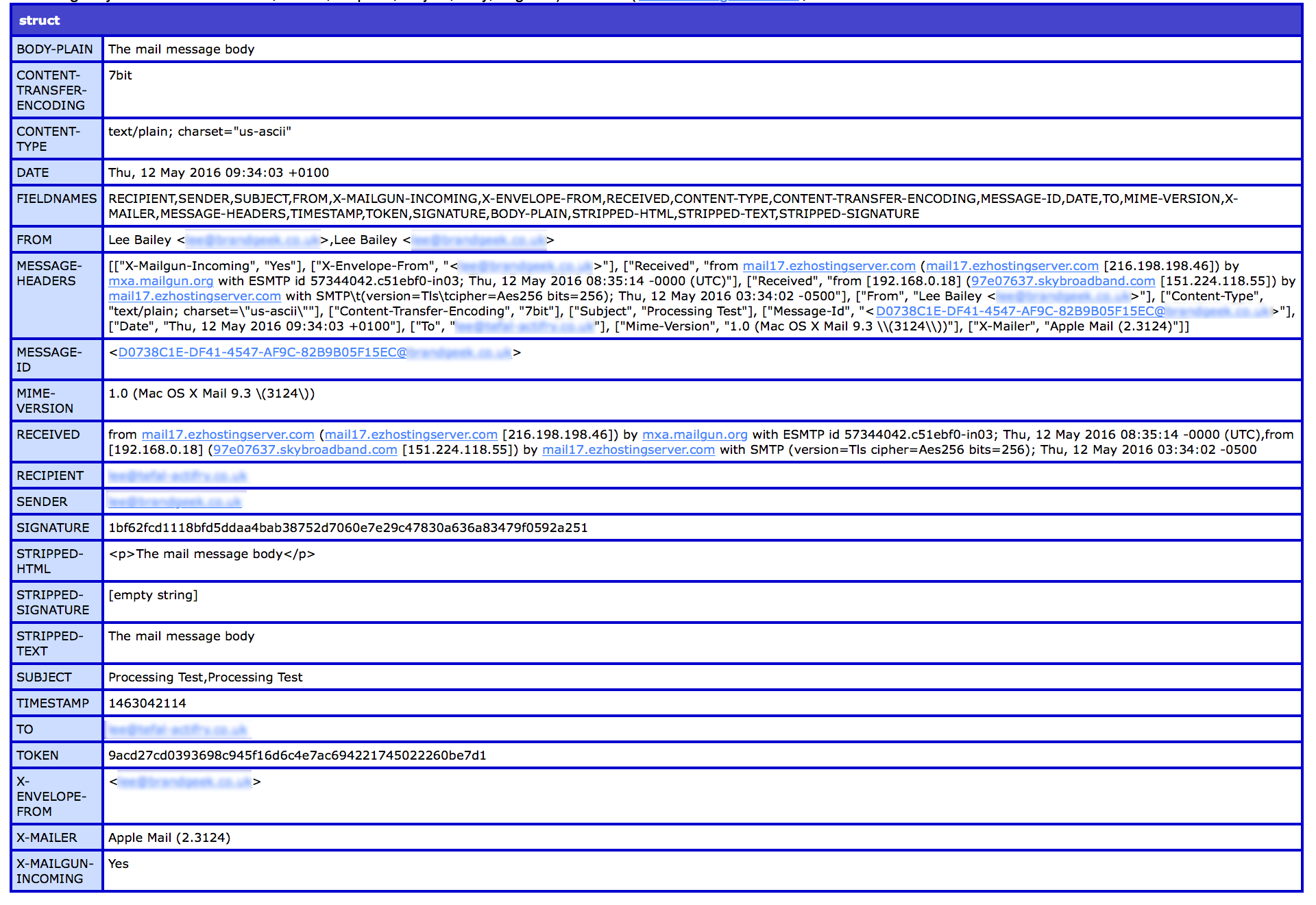 我刚刚开始在我为内部使用开发的网络应用程序中使用Mailgun进行双向电子邮件。我已经设置了一条将消息转发到服务器上的URL的路由--它运行良好。