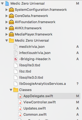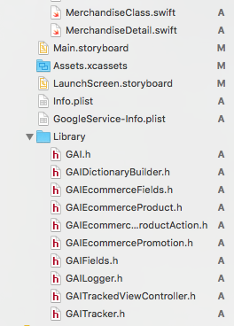 我的项目中有.h文件,还有libGoogleAnalyticsServices.a、libsqlite3.0.tbd、libz.tbd、libsqlite3.tbd (所有这些文件都链接到库以及CoreData和SystemConfiguration)。