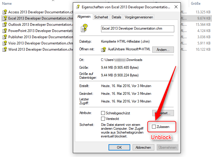 下载的CHM文件显式地“解块”可能解决您的问题。请在Windows资源管理器和本地驱动器中尝试(!)在执行Office 2013的下一个安装步骤之前: