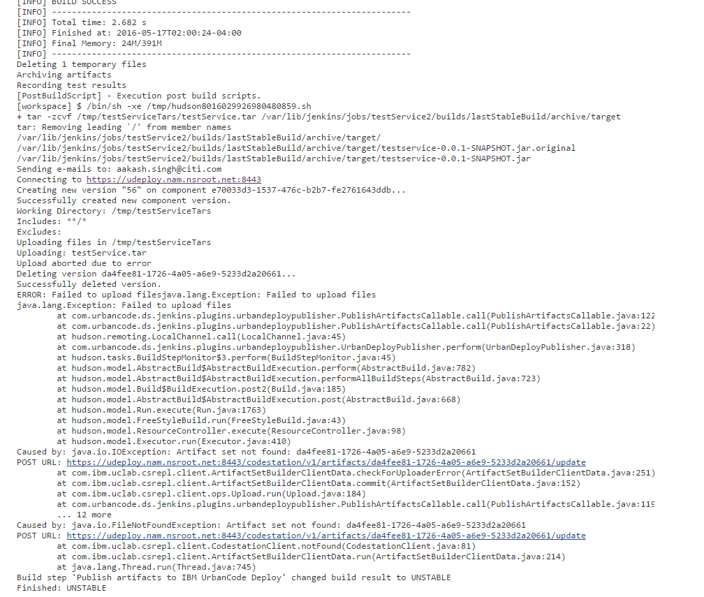 在从jenkins创建了构建的tar之后,我尝试使用uDeploy将tar移动到主服务器。但是,即使使用了正确的应用程序名称、环境和进程名,我也会得到以下错误。我无法进一步调试。