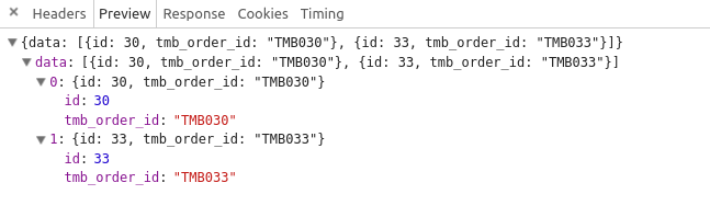 data : [{id: 30, tmb_order_id: "TMB030"}, {id: 33, tmb_order_id: "TMB033"}]就像这张照片