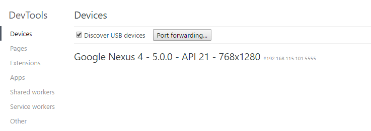 我推出了Android仿真器应用程序(Genymotion)。问题是我不能检查Chrome工具中的任何东西(见下面的截图)。有小费吗?