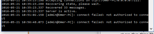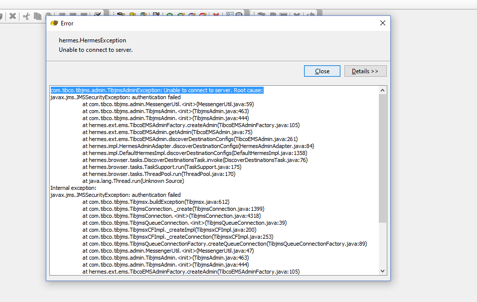 做完所有的设置后,当我尝试连接到运行在本地机器上的EMS服务器时。它给我提供了身份验证错误。