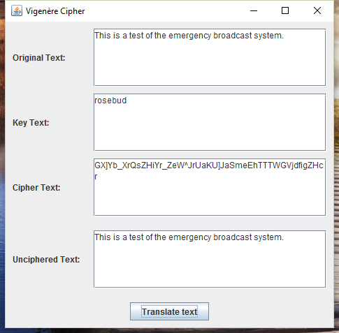 我使用了GUI,但是您可以通过控制台输入和输出使用TranslateTextListener类的密码和注释方法。