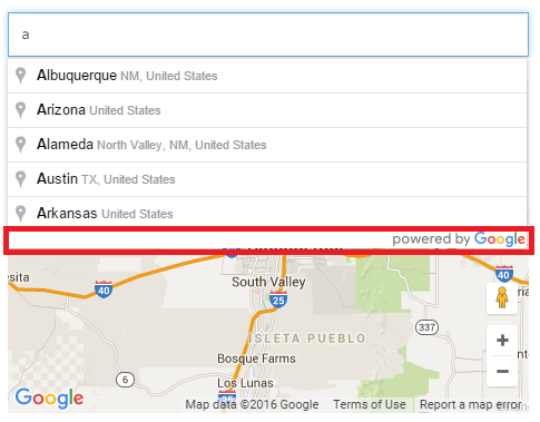 如果您还显示了Google,隐藏徽标是可以的: 要求 您可以使用CSS隐藏它: ..pac容器:在{ /*免责声明之后:不需要显示“由谷歌供电”,如果也显示了Google */背景-图像:无!重要;高度: 0px;}