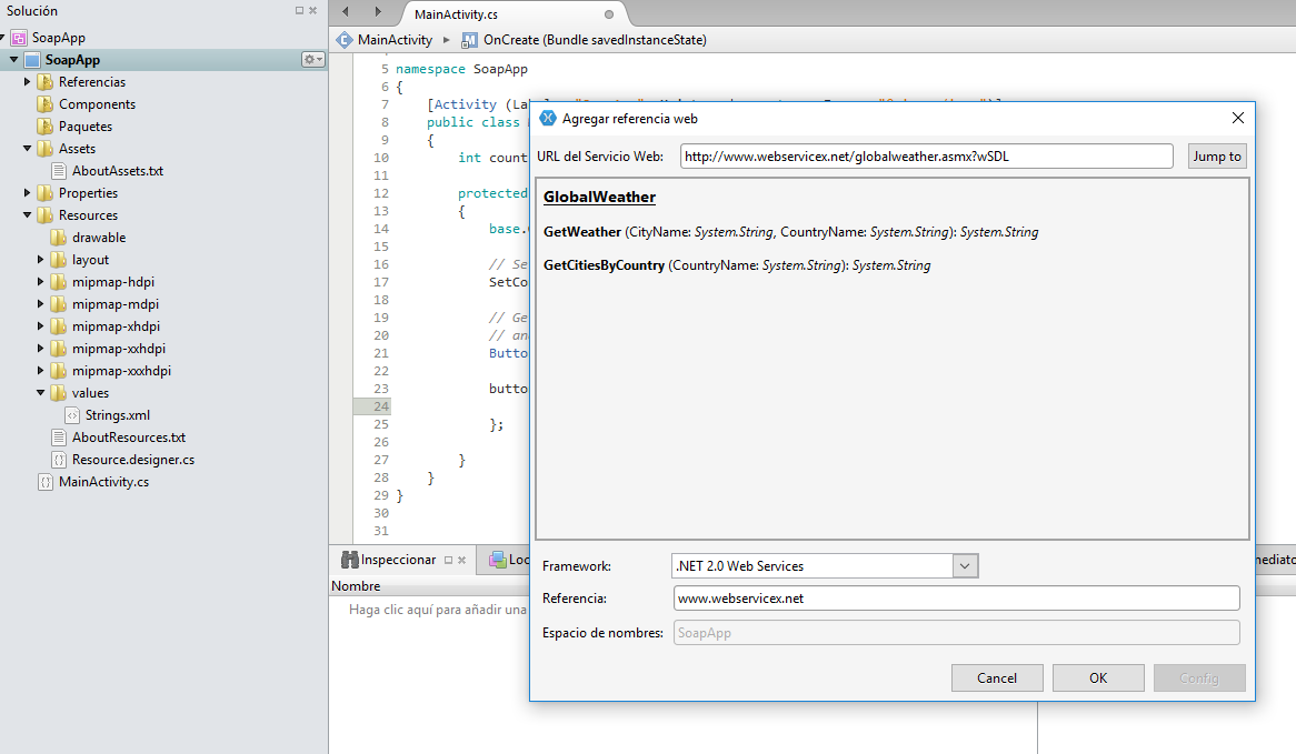 我正在使用xamarin工作室构建我的第一个android应用程序,使用一个web服务,我在文档中找不到任何帮助:单击这里!
