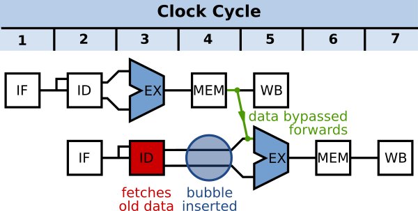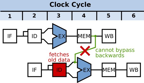 这是通过在管道中引入一个气泡来解决的(比如NOP),它解决了数据依赖,而不需要向后传播数据(这是不可能的)。